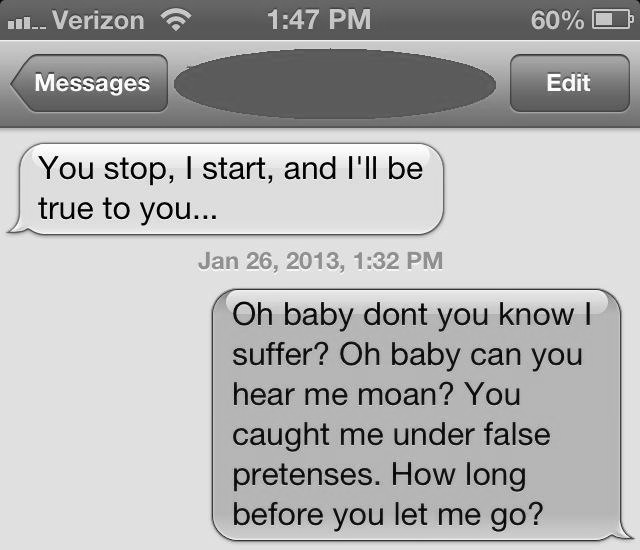 People think that because I spend so much time by myself, that I am lonely. That couldn’t be further from the truth. I don’t mind being alone at all. At this point, I get enough social interaction through therapy and group sessions to satisfy that part of me. I don’t need or want anymore…sometimes, even that is too much social contact. Just because I’m alone doesn’t mean I’m lonely. I choose to be like this. One…my emotions are so erratic that I honestly don’t trust myself in most social situations. Two…people irritate the hell out of me…the tiniest infraction will set me off…so I choose to stay to myself. I want to like people but they’re just so fucking stupid. Some people are alive today simply because I did not want to go to prison. And three…I don’t want to spread my depression around and rain on other people’s parade. I don’t want to hurt anyone else. I’d rather sit here and hurt myself than hurt another person. I know I’m not very fun to be around right now…so instead of making people feel like they have to tip-toe around me…I just take myself out of the whole situation. The brief relief of seeing other people when I leave my room turns into a desperate need to be alone, and then being alone turns into a terrible fear that I will have no friends; I will be alone in this world and in my life. I don’t think I have friends anymore…and that’s entirely my fault and I blame no one for leaving or turning away…it is actually a very smart decision on their part. Trust is probably a bigger factor than I would like to admit. I am leery of everyone that comes into my life now. I waste no time putting them through tests of their endurance, love and patience. The most expensive thing in the world is trust…it can take years to earn and just a matter of seconds to lose. I’m tired of the effort I put into relationships I want so desperately to work out…so it’s easier to weed people out from the starting gate rather than waiting until too far into the relationship that it hurts when they leave. I’d rather watch you walk away now than watch you walk away in two years. It’s easier for me to let you go if I just said hi to you five minutes ago. It’s harder to let you go if I have told you that I have loved you for five years.